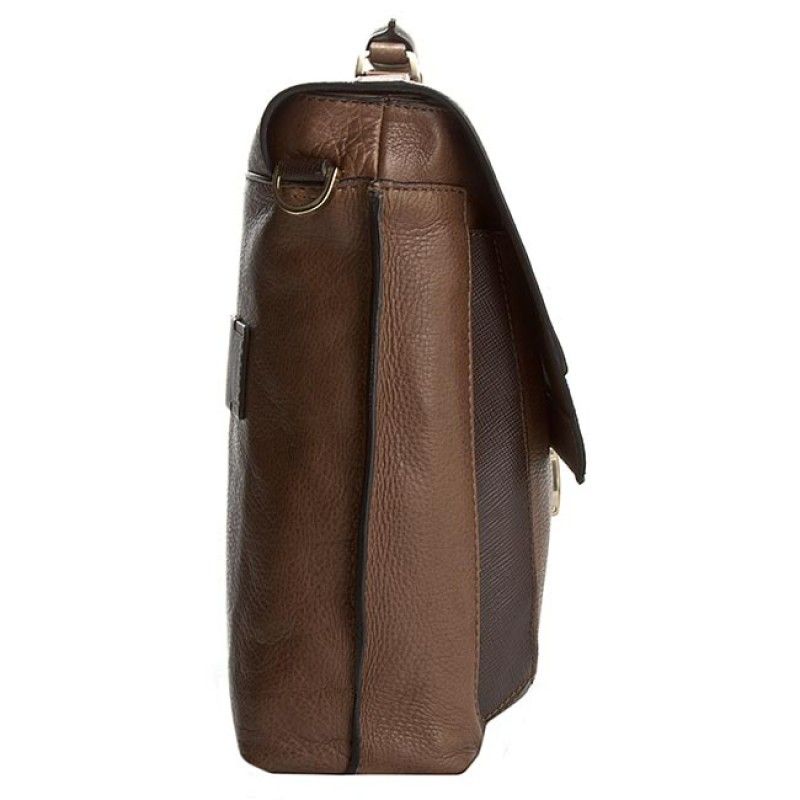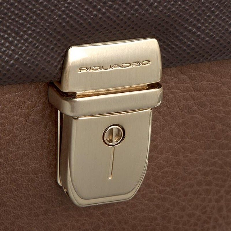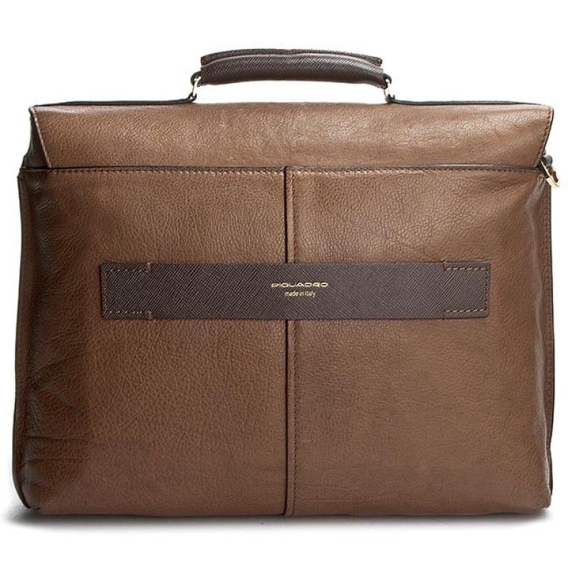 Cartella con tracolla regolabile e rimovibile realizzata interamente in pelle. Dotata di un unico scomparto chiuso con patta, con organizzazione interna fissa composta da un'ampia tasca con chiusura zip e tasche applicate multifunzione. Porta pc 15,6" e tablet imbottiti. Aggancio posteriore per trolley, tracolla regolabile e rimovibile.