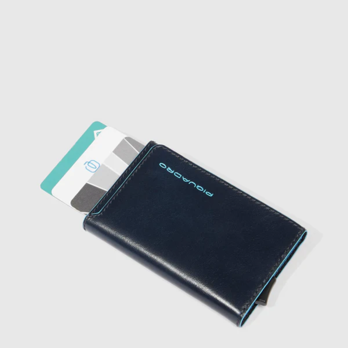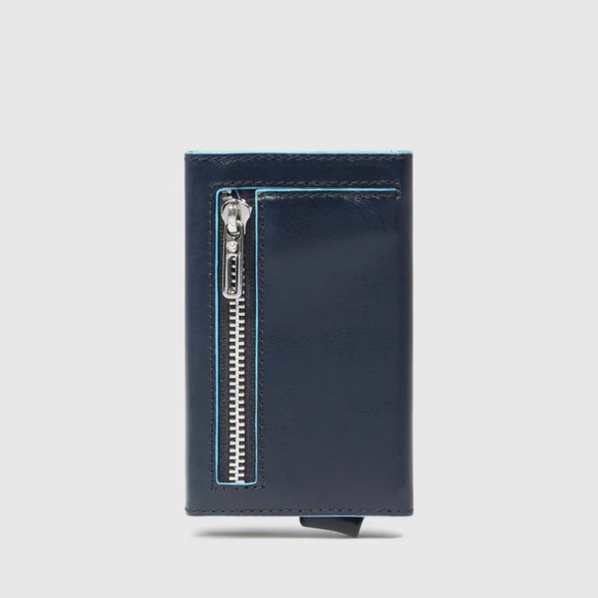 Portacarte di credito con sliding system, tasca frontale e porta monete posteriore, schermato con protezione anti frode RFID